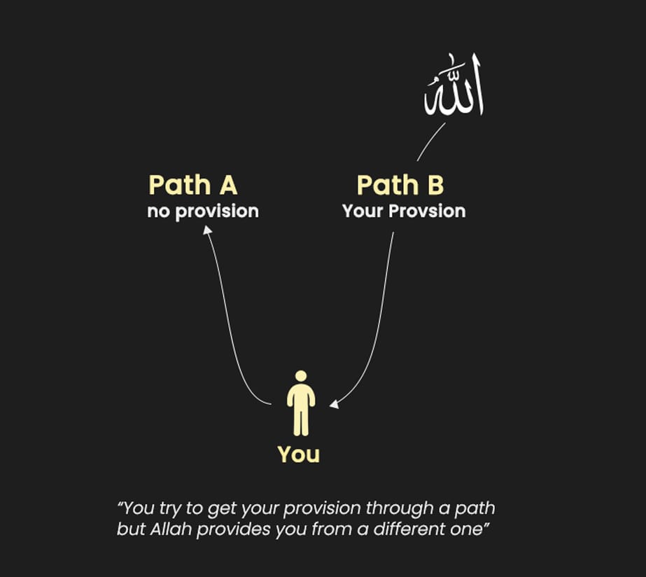 Sometimes, you give your best to earn money through one path (A), yet Allah ﷻ provides for you through another path (B). And sometimes, without any effort at all, you still receive sustenance.